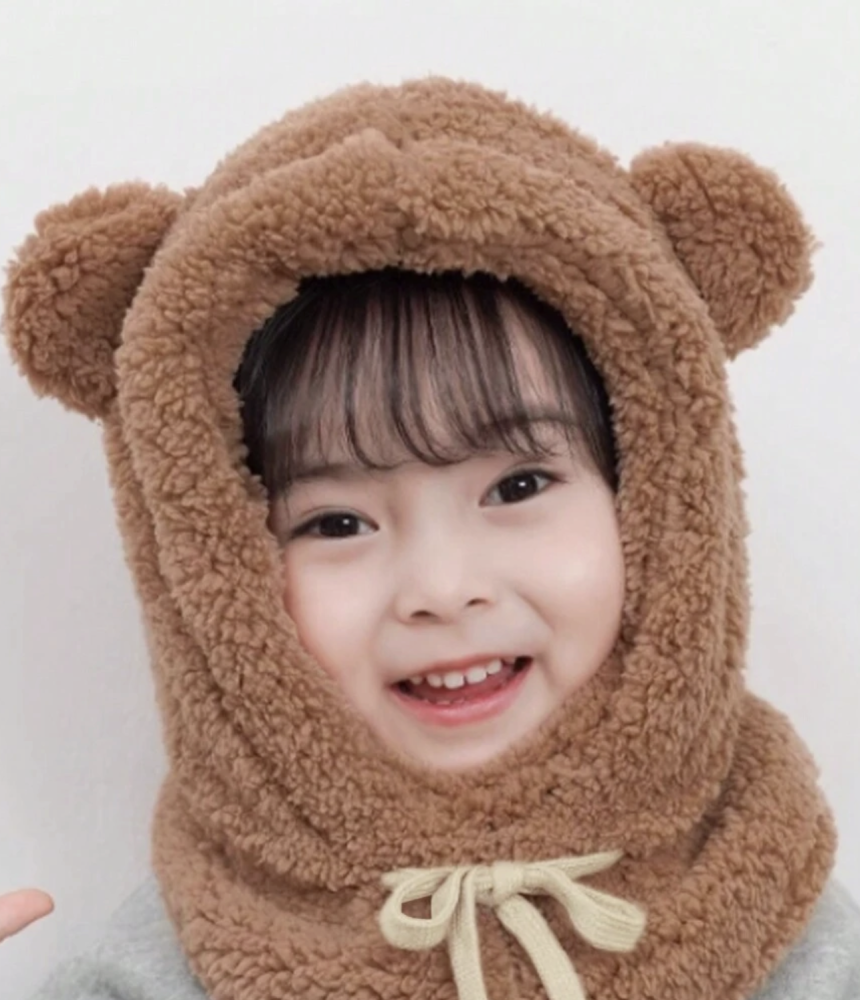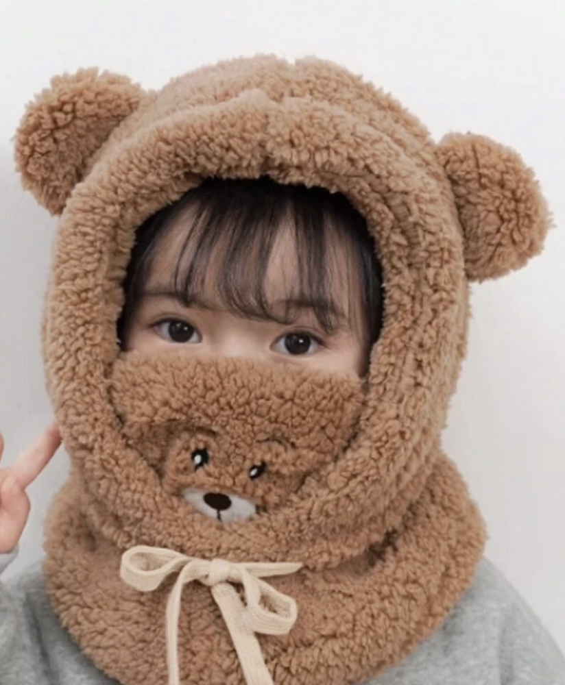 قطعة واحدة قبعة صوفية دافئة محمية الأذن للأطفال بنقاب وأذنين على شكل الحمل والدب الكرتوني للأطفال من عمر 2-9 سنوات